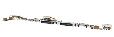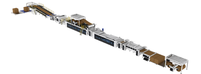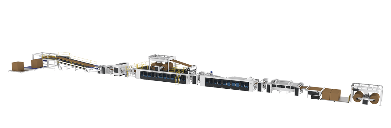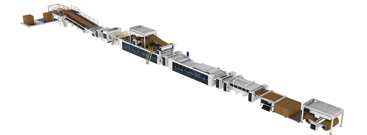 最高生產(chǎn)速度高達100m/分鐘,整線自動化程度高,原紙損耗低,紙板平整度高;擁有十多項專利。